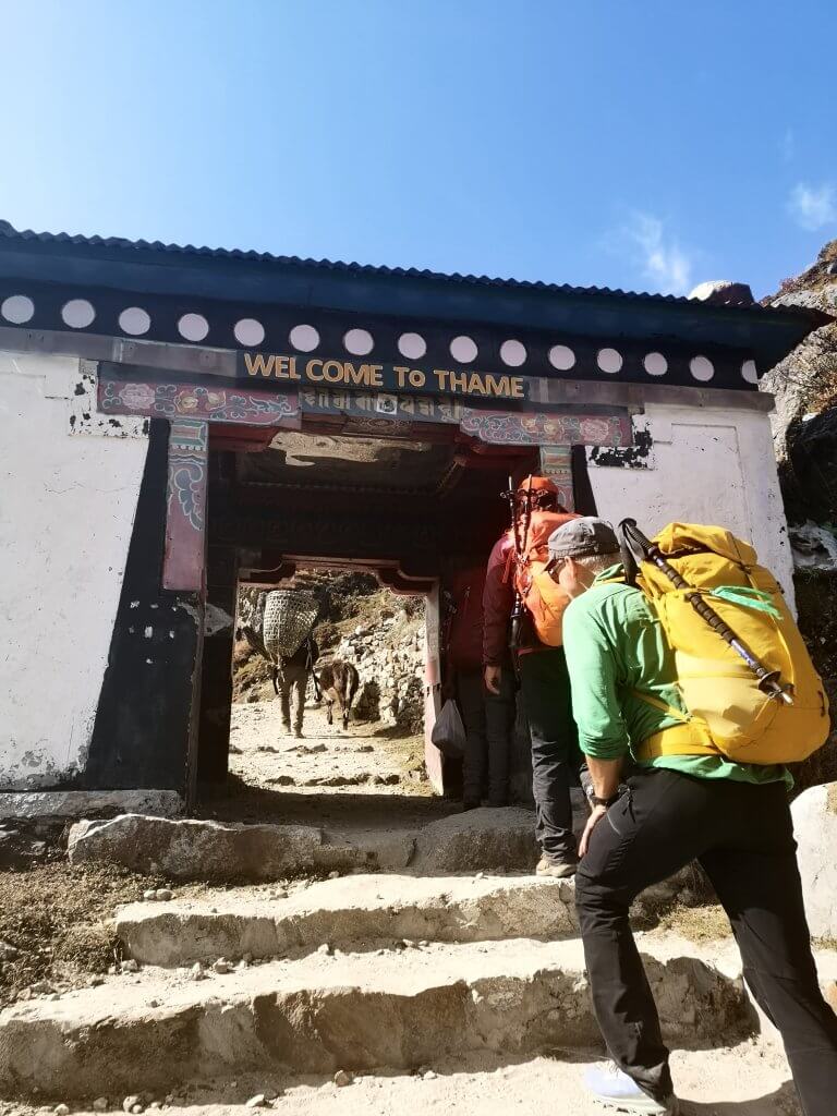 Offizielle Beschreibung: Eine leichte Wanderetappe durch ein traumhaft schönes und abgelegenes Seitental bringt Sie heute in etwa 3-4 Stunden nach Thame (ca. 3800 m). Über dem Dorf thront ein sehr sehenswertes Kloster. Ein Spaziergang dorthin dient nicht nur der besseren Höhenanpassung, mit etwas Glück können Sie auch an einer Puja-Zeremonie teilnehmen (Gehzeit zum Kloster ca. 1h