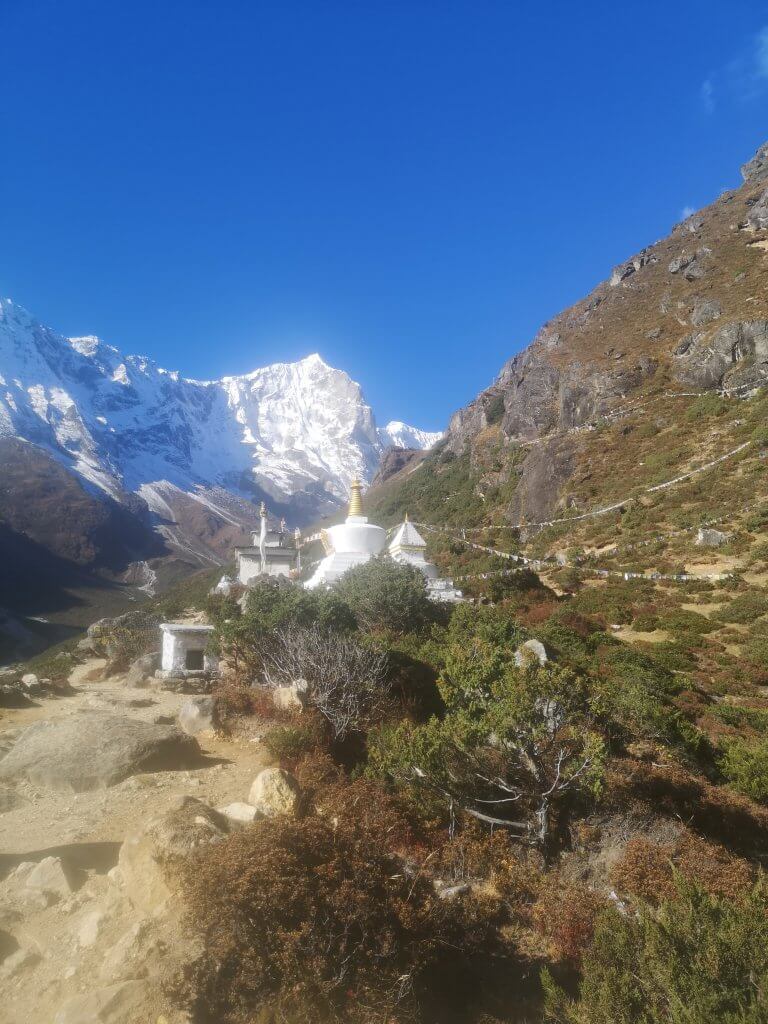 Der heutige Tag dient der bestmöglichen Akklimatisation und Vorbereitung für die drei bevorstehenden 5000er-Pässse. Je nach persönlichem Fitness- und Akklimatisationsstand bieten sich dafür verschiedene Optionen an. Die Minimalvariante ist der Ausflug zum sehr sehenswerten kleinen Kloster Thame, welches aussichtsreich 200 Meter über dem Dorf thront und am frühen Morgen oder Abend oft die Möglichkeit bietet, an einer Puja-Zeremonie teilzunehmen (bis dahin 1h, 200 m↑).