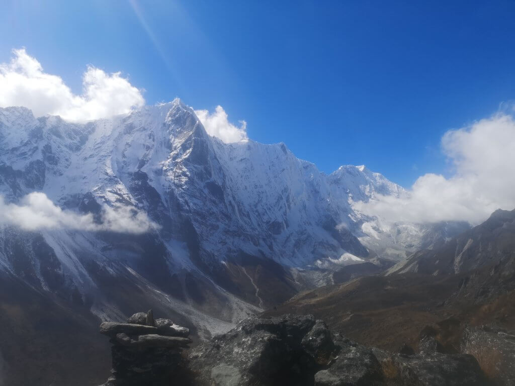 Nicht ganz auf den Sundar Peak (5300) aber 900hm reichen am Ruhetag. Und wir haben unseren 3. 8000er, den Cho Oyu in voller Pracht gesehen.