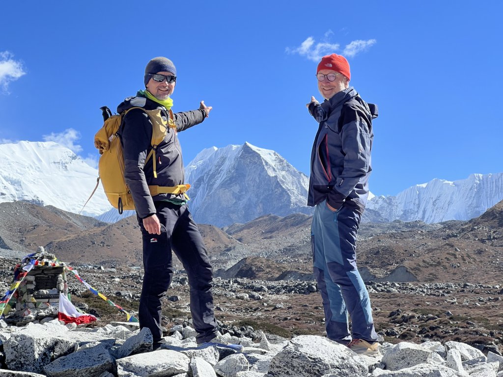m Nachmittag/Abend (oder auch am nächsten Morgen) besteht optional die Gelegenheit, ihre Tour mit einem letzten Aussichts-5000er abzurunden. Der 5073 m hohe Nangkartshang steht genau oberhalb der Verzweigung der beiden obersten Khumbu-Täler und ist somit ein exzellenter und häufig bestiegener Aussichtspunkt. Der etwa dreistündige Aufstieg auf gut ausgebautem Weg führt vorbei an einem kleinen verlassenen Kloster, zahlreichen Chörten, Gebetsfahnen und Mani-Steinen. Vom Fahnenmast auf dem Gipfel bietet sich ein großartiger Ausblick und lädt zum Verweilen ein, ehe es wieder hinunter geht (ab der Hälfte vorteilhaft anderer Rückweg, Gehzeit ca. 4-5h, 650 m↑↓